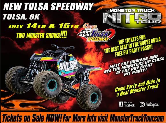 Come out for a fun weekend of Monster Trucks over at Tulsa Speedway. We will be transforming our circle dirt track to watch these Monster Trucks do some awesome things! This is definitely something you and your family do not want to miss out on.
