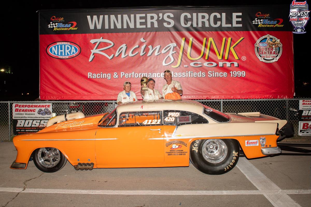 Top Sportsman racer James Ogden made the switch to Pro 4.20 and took home the win over Pierce in the finals. The next race for this class is Flying H Drag Strip May 30-June 1.